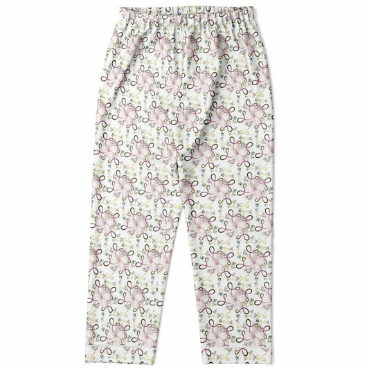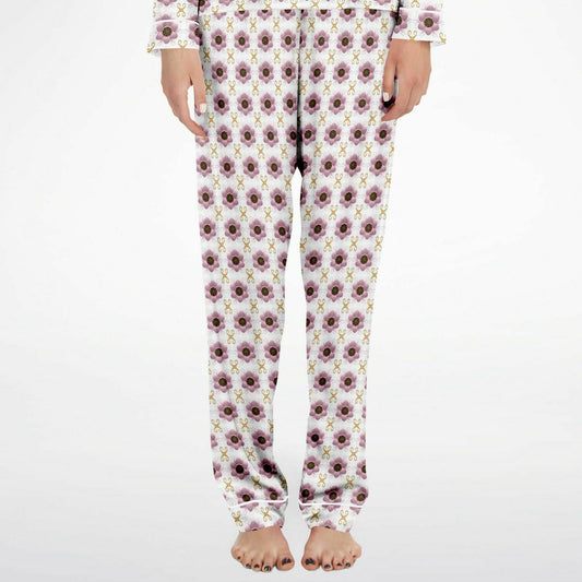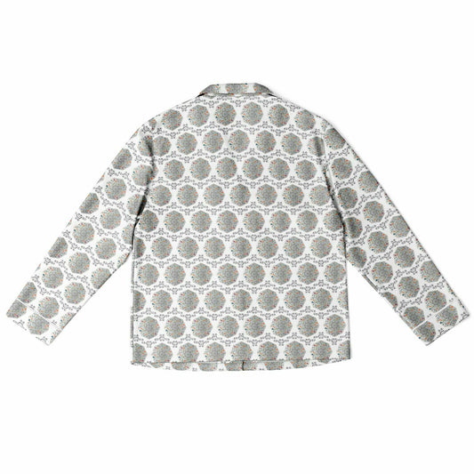 Women's Satin Pajamas - AOP Kukloso Melange de fleur No 30 Mini-Mandala pattern with Pnk & Gold accents on White - Free Shipping