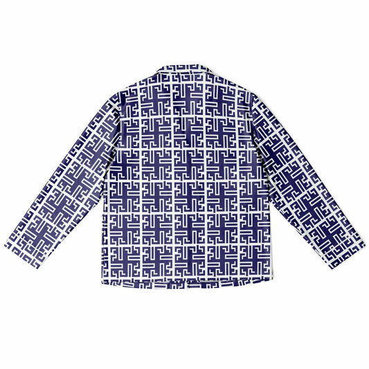 Women's Satin Pajamas - AOP Kukloso Greek Border No 54 Navy on White - Free Shipping