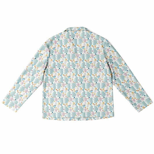 Women's Satin Pajamas - AOP Kukloso Scallop Shell No 1 Aqua on Navy - Free Shipping