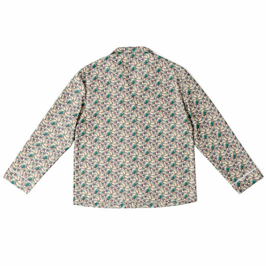 Women's Satin Pajamas - AOP Kukloso Madam Butterfly No 1 Aqua & Gold colors on White - Free Shipping