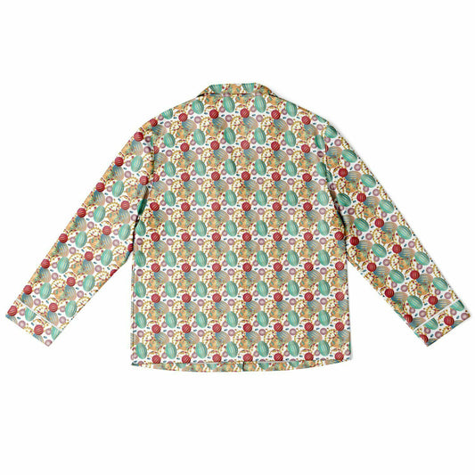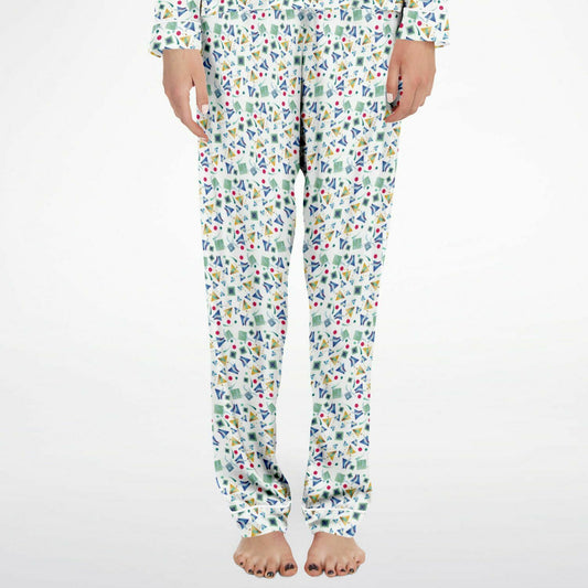 Women's Satin Pajamas - AOP Kukloso Whimsical No 11 Multi-Geometrical shapes & colors on White - Free Shipping