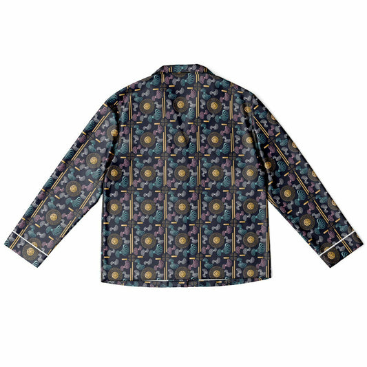 Women's Satin Pajamas - AOP AOP Kukloso Whimsical No 99 Mini-Mandalas Gold, Silver, Aqua & Pink on Navy - Free Shipping