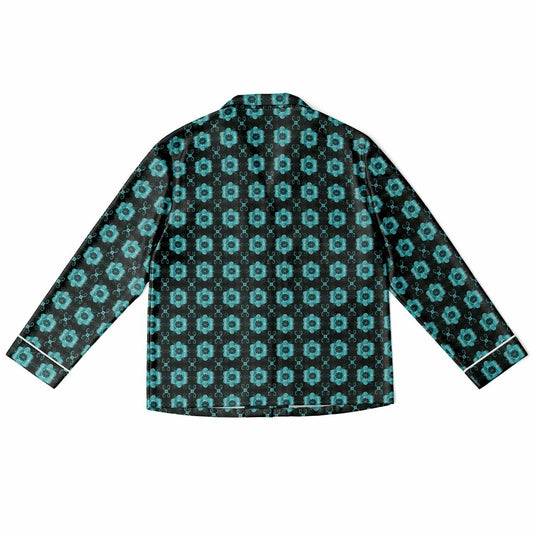 Women's Satin Pajamas AOP Kukloso Melange de fleur No 29 Aqua-colored Mini-Mandalas on Black - Free Shipping