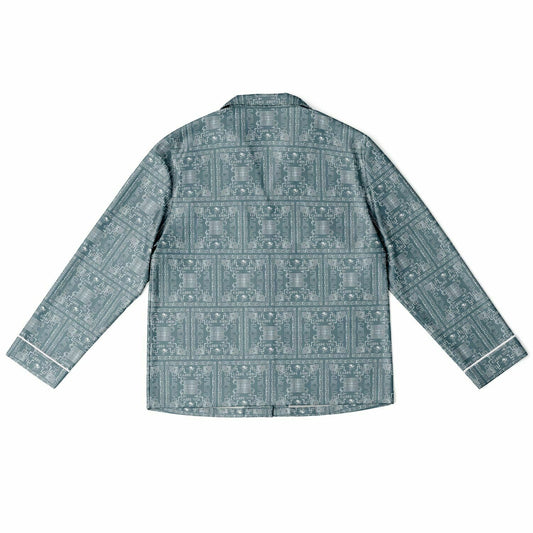 Women's Satin Pajamas - AOP Kukloso Greek Border No 41 No 5 Carpe Diem Silver on Blue-Green - Free Shipping