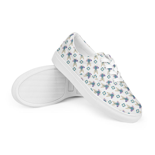 Women’s lace-up canvas shoes Kukloso My Favorite Moth on White - Free Shipping