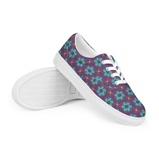 Women’s lace-up canvas shoes Kukloso Melange de fleur No 29 on Purple - Free Shipping