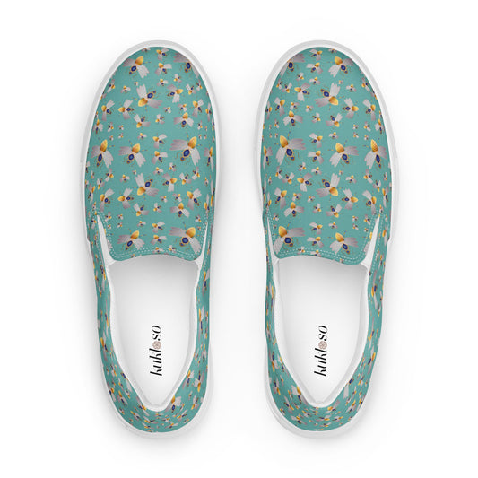 Women’s slip-on canvas shoes Kukloso Queen bee No 42 on Blue/Green - Free Shipping