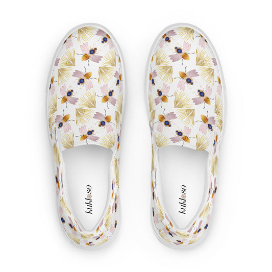 Women’s slip-on canvas shoes Kukloso Queen bee No 21 on White - Free Shipping