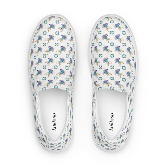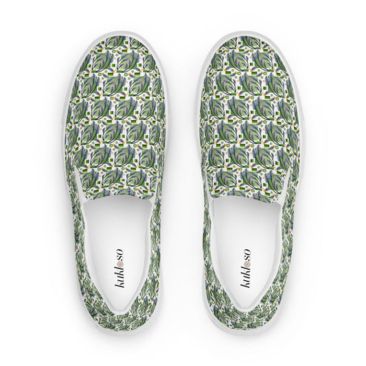 Women’s slip-on canvas shoes Kukloso Melange de fleur No 46 Green on White - Free Shipping