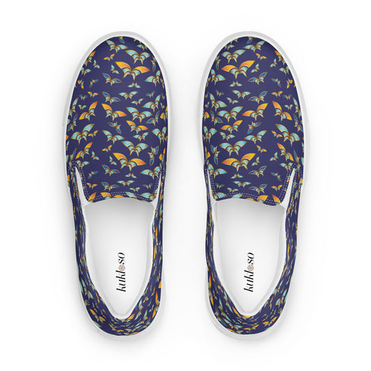 Women’s slip-on canvas shoes Kukloso Madam Butterfly on Navy - Free Shipping