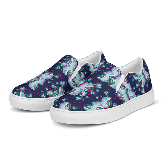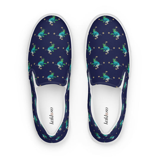 Women’s slip-on canvas shoes Kukloso Ganesha No 19 Aqua on Navy - Free Shipping
