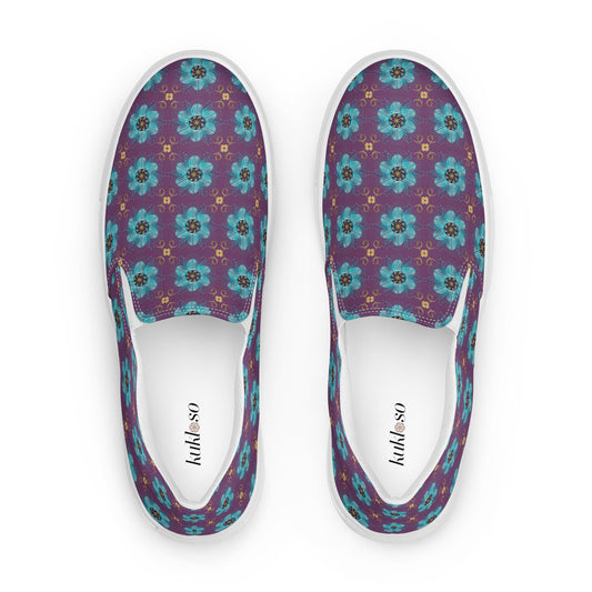 Women’s slip-on canvas shoes Kukloso Melange de fleur No 29 on Purple - Free Shipping