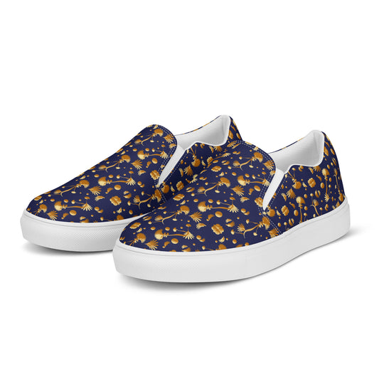 Women’s slip-on canvas shoes Kukloso Melange de fleur No 22 Gold on Navy - Free Shipping