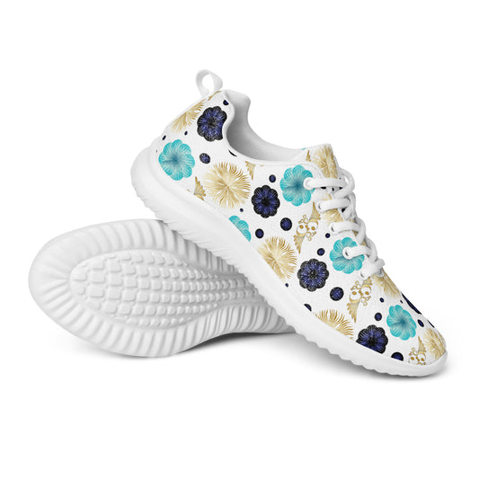 Women’s athletic shoes Kukloso Abstractical No 222 Aqua/Navy/Gold Mini-Mandalas on White - Free Shipping