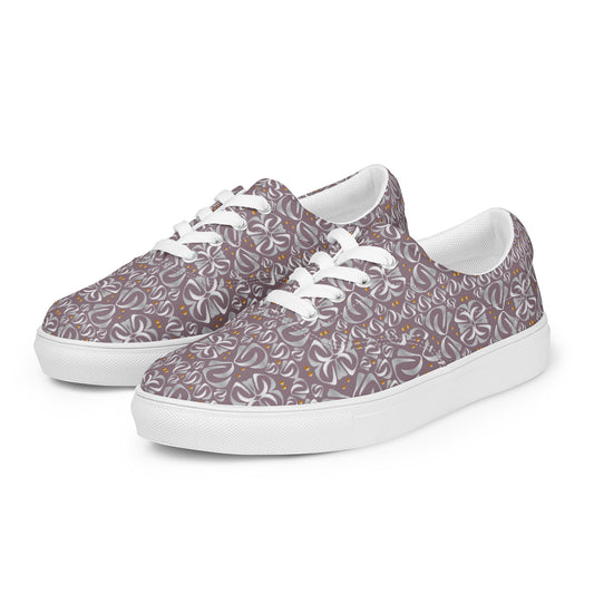 Women’s lace-up canvas shoes Kukloso Fleurons No 32 Gold, Silver on Mauve - Free Shipping