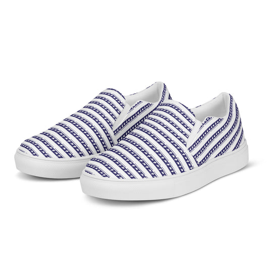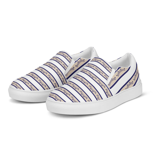 Women’s slip-on canvas shoes Kukloso FS Happy Ganesh Navy Stripes on White - Free Shipping