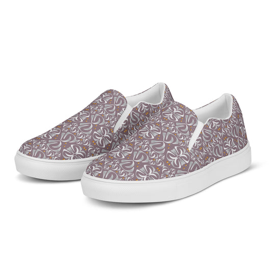 Women’s slip-on canvas shoes Kukloso Fleurons No 32 Gold, Silver on Mauve - Free Shipping