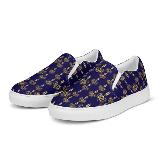 Women’s slip-on canvas shoes Kukloso FS Golden Fleurons on Navy - Free Shipping