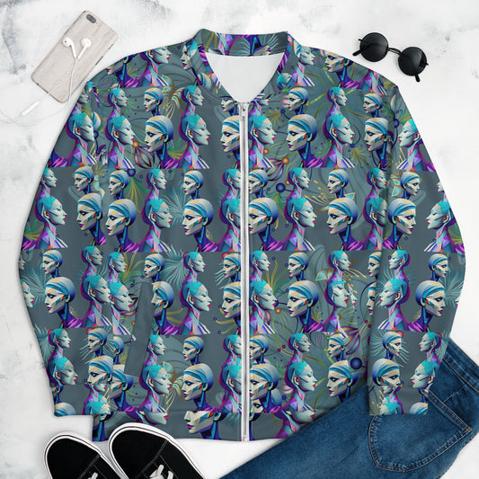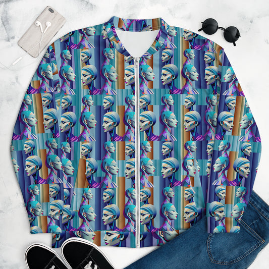 Unisex Bomber Jacket Kukloso Cubist Ladies In Purple No 4 - Free Shipping