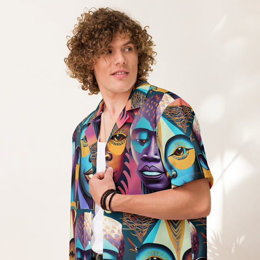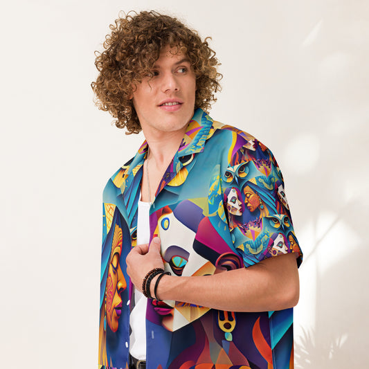 Unisex button shirt Kukloso Cubist Faces No 3 - Free Shipping Product