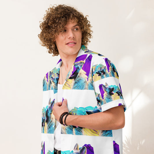 Unisex button shirt Kukloso Three White German Sheperds - Free Shipping