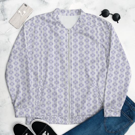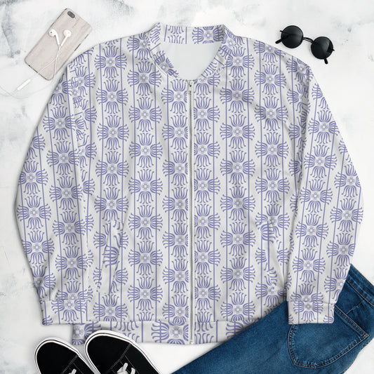 Unisex Bomber Jacket Kukloso Fleuron No 2 White Small Pattern - Free Shipping