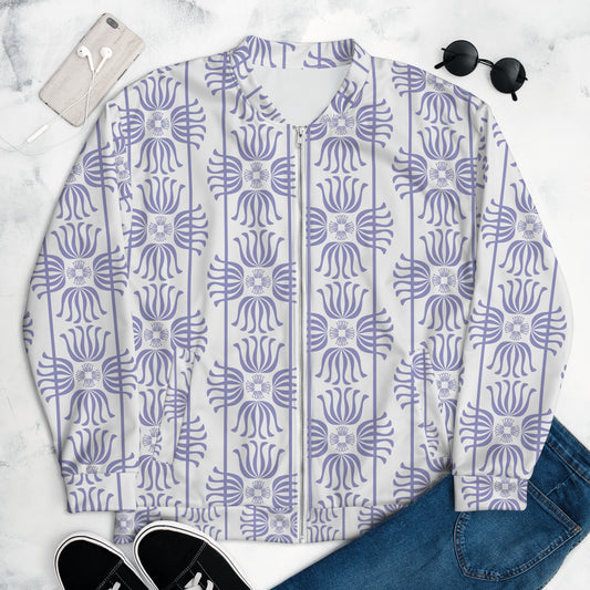 Unisex Bomber Jacket Kukloso Fleuron No 2 White Large Pattern - Free Shipping
