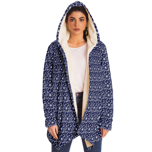Microfleece Cloak - AOP Kukloso Whimsical No 108 Intricate White Mandala pattern on Navy - Free Shipping