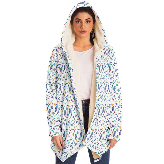 Microfleece Cloak - AOP Kukloso Whimsical No 80 Abstract shapes, Aqua, Navy Yellow on White - Free Shipping