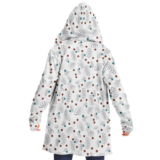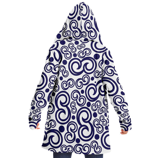 Microfleece Cloak - AOP Kukloso Whimsical No 85 Silver Spiral shapes on White - Free Shipping