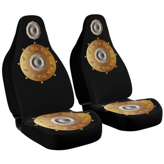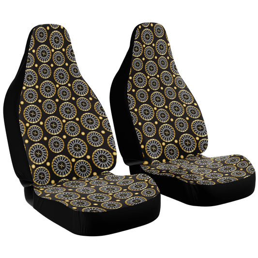 Car Seat Cover - AOP Kukloso Intricate Mandala design, Gold & Silver colors on Black- Free Shipping