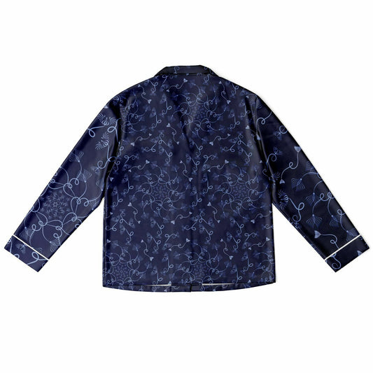 Women's Satin Pajamas - AOP Kukloso Abstractical No 19 Periwinkle on Navy - Free Shipping