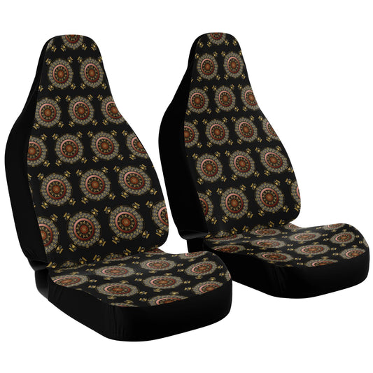 Car Seat Cover - AOP Kukloso Mandala No 27, intricate design of Copper & Gold on Black - Free Shipping