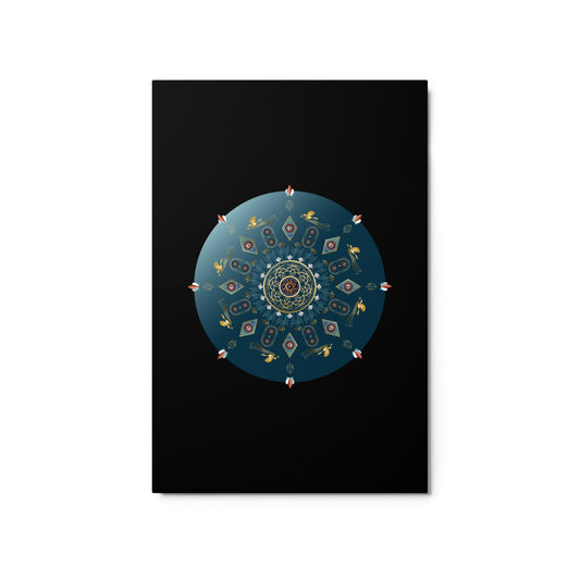 Metal prints Kuklos No 4440 Abstract Mandala design, Aqua, Gold & Black colors Free Shipping