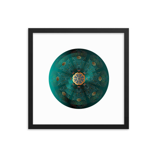 Framed poster Kuklos No 4477 Mandala Viridian Green - Gold Free Shipping