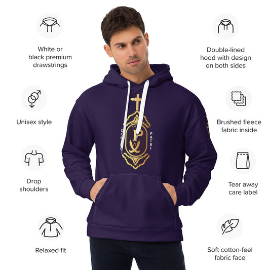 Unisex Hoodie Kukloso Domino Patri - Chi Ro PX Christogram Dark Purple - Free Shipping
