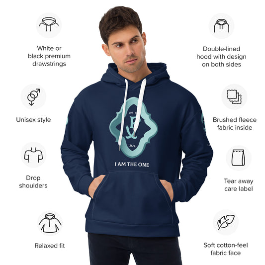 Unisex Hoodie Kukloso Chi Ro PX Christogram, I Am The One No 3 Navy - Free Shipping