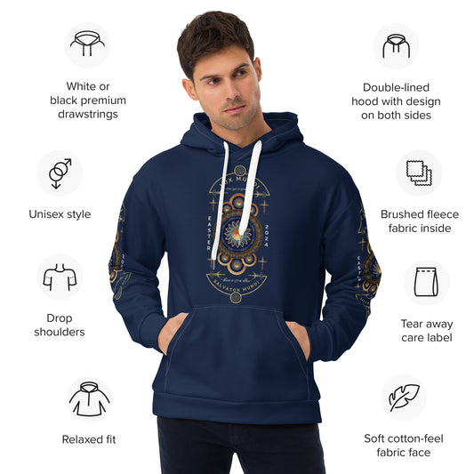 Unisex Hoodie Kukloso Golden Monstrance 'Lux Mundi' 'Light of The World' No 3 Navy - Free Shipping