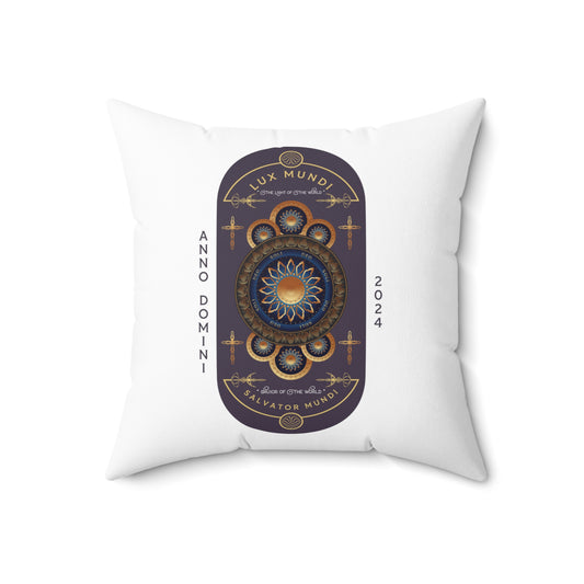 Spun Polyester Square Pillow Kukloso 'Lux Mundi, Salvator Mundi' - Easter 2024 - Dominus Patri w/ Bible Verses, Dark Purple - Free Shipping