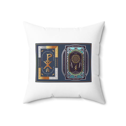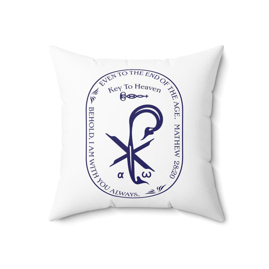 Spun Polyester Square Pillow Kukloso 'Vita Donum' (Gift of Life) / PX Christogram, 'Key To Heaven', Matthew 28:20 - Free Shipping