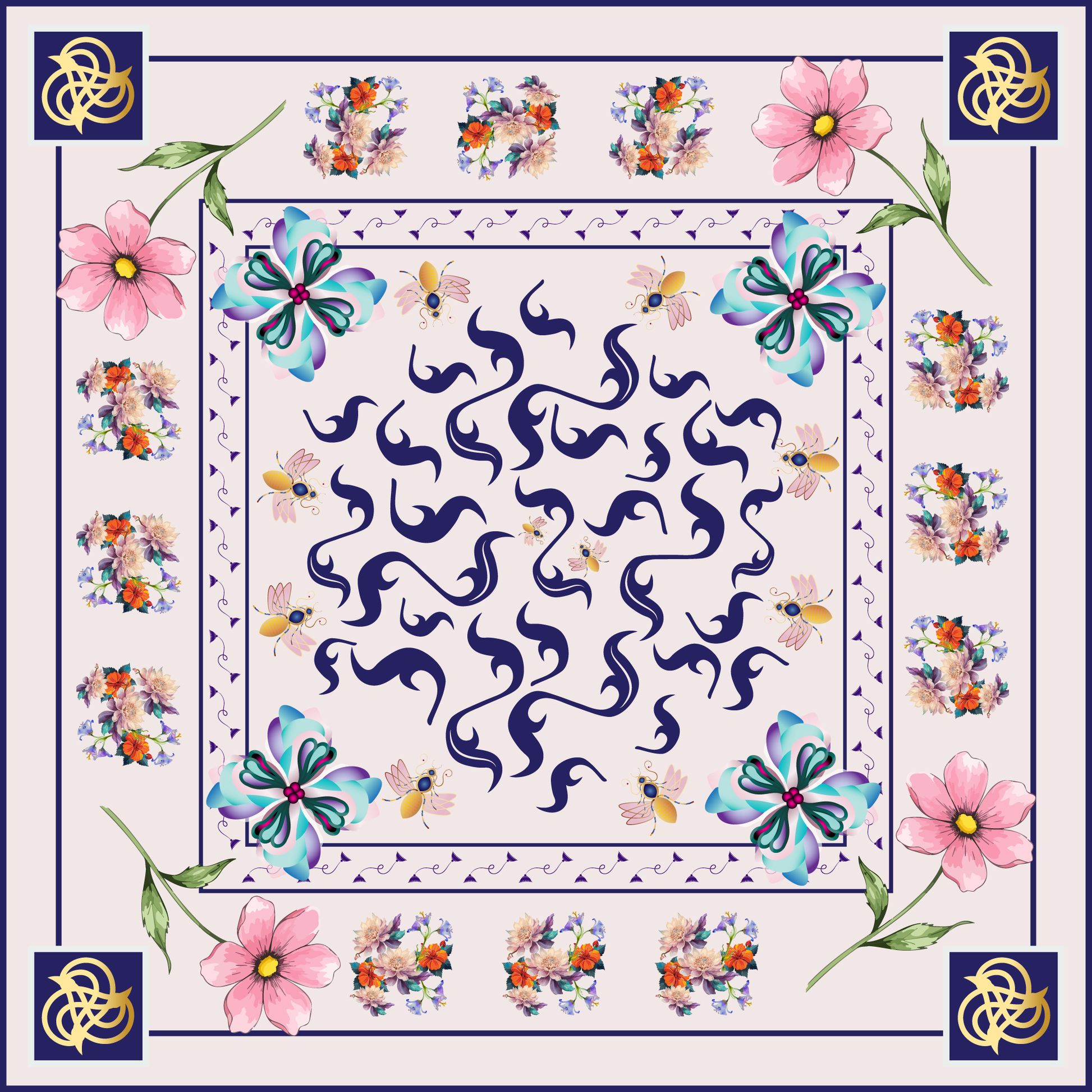 100% Silk Charmeuse Square Scarf Abstract Florals No 7