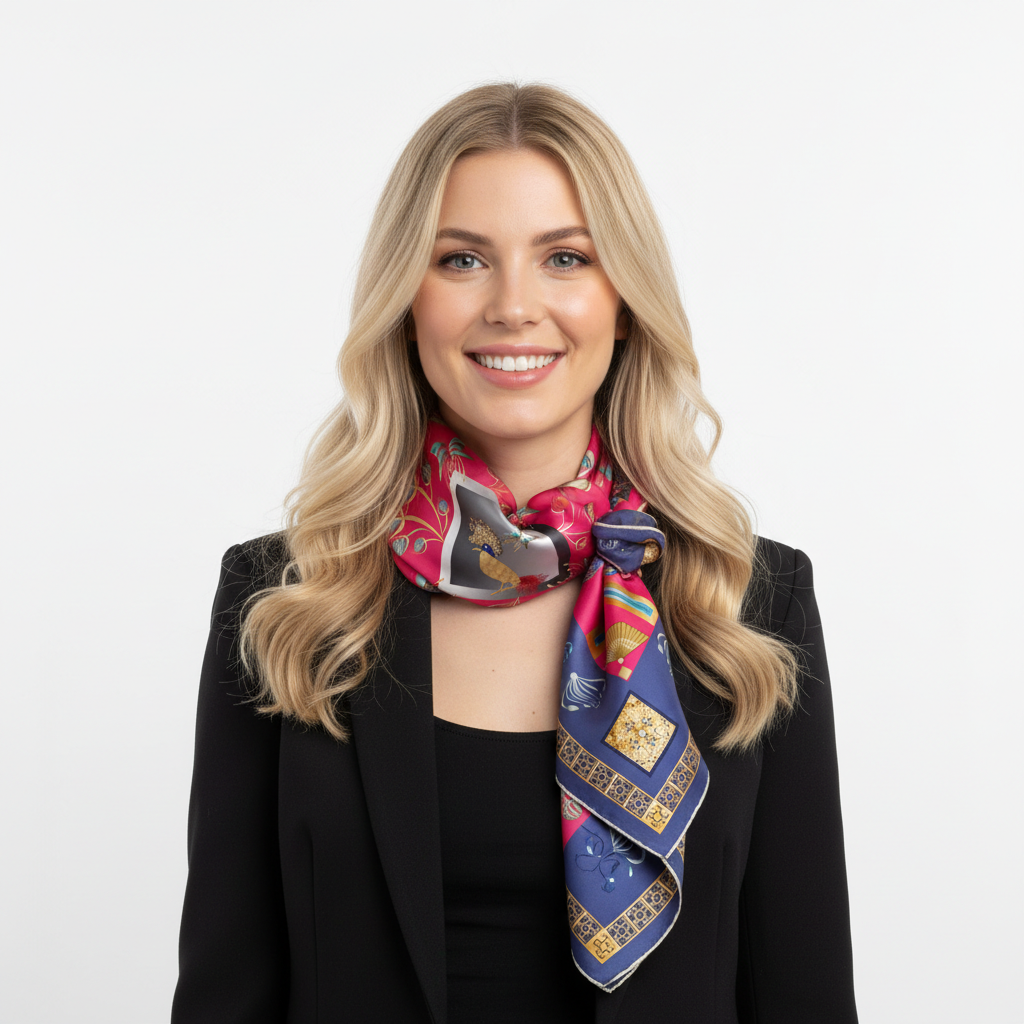 These fluid and beautifully draped silk scarves are the perfect way to dress up any outfit, allowing you to wear Kukloso art wherever you go, all year long.