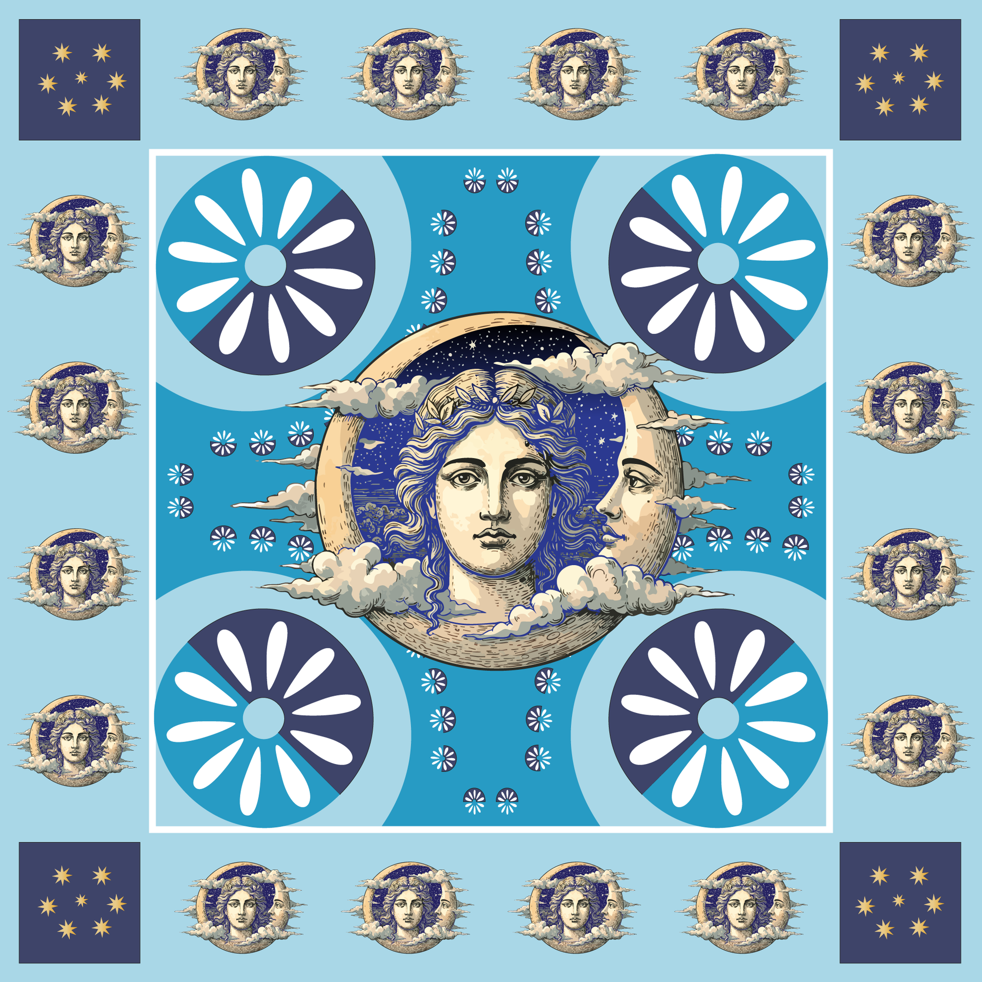 100% Silk Charmeuse Square Scarf Crescent Moon in Blue