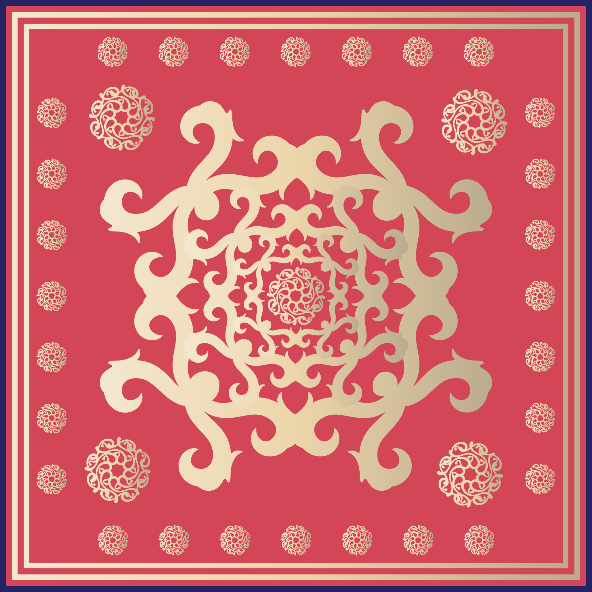 100% Silk Charmeuse Square Scarf Golden Elements No 2