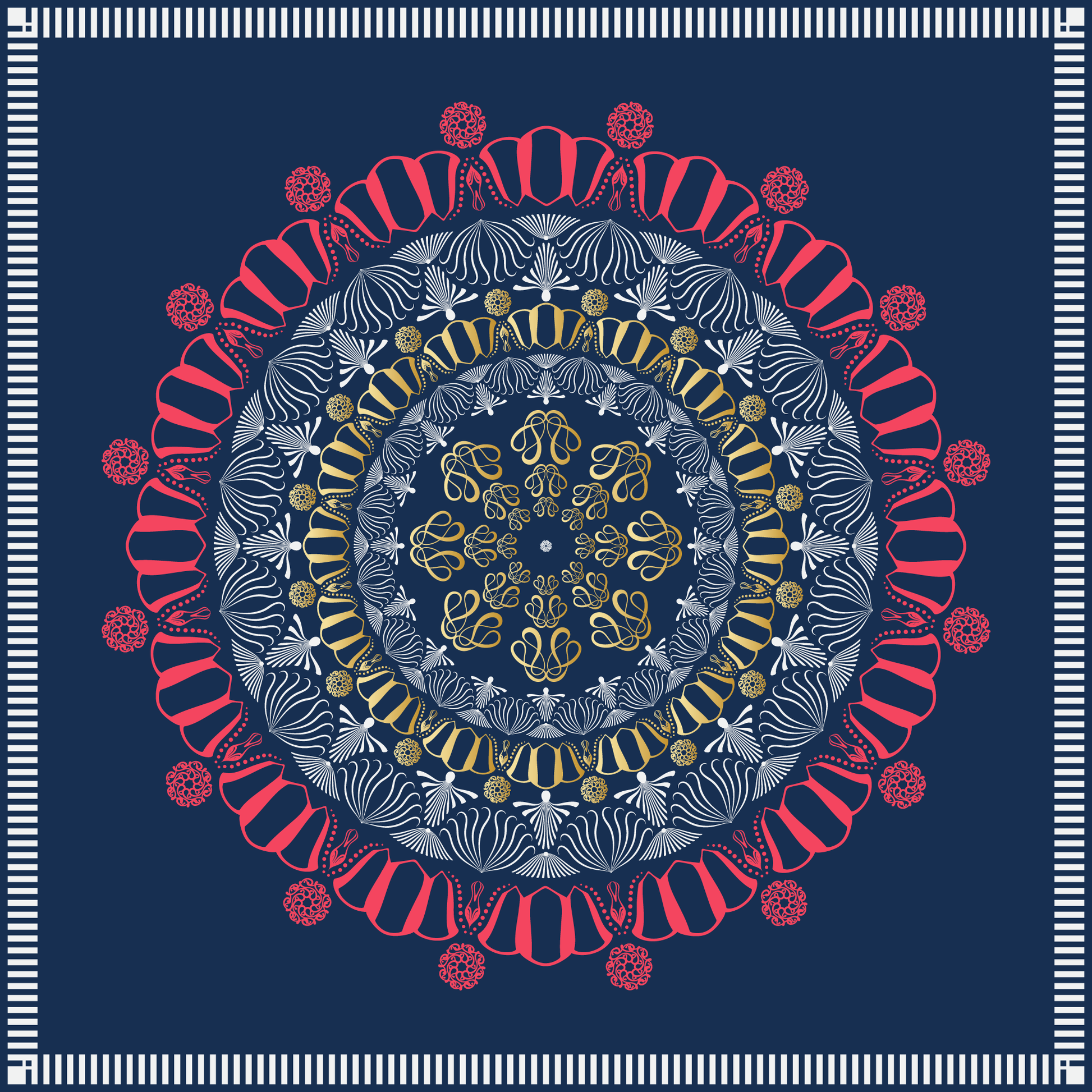 100% Silk Charmeuse Square Scarf Mandala on Blue