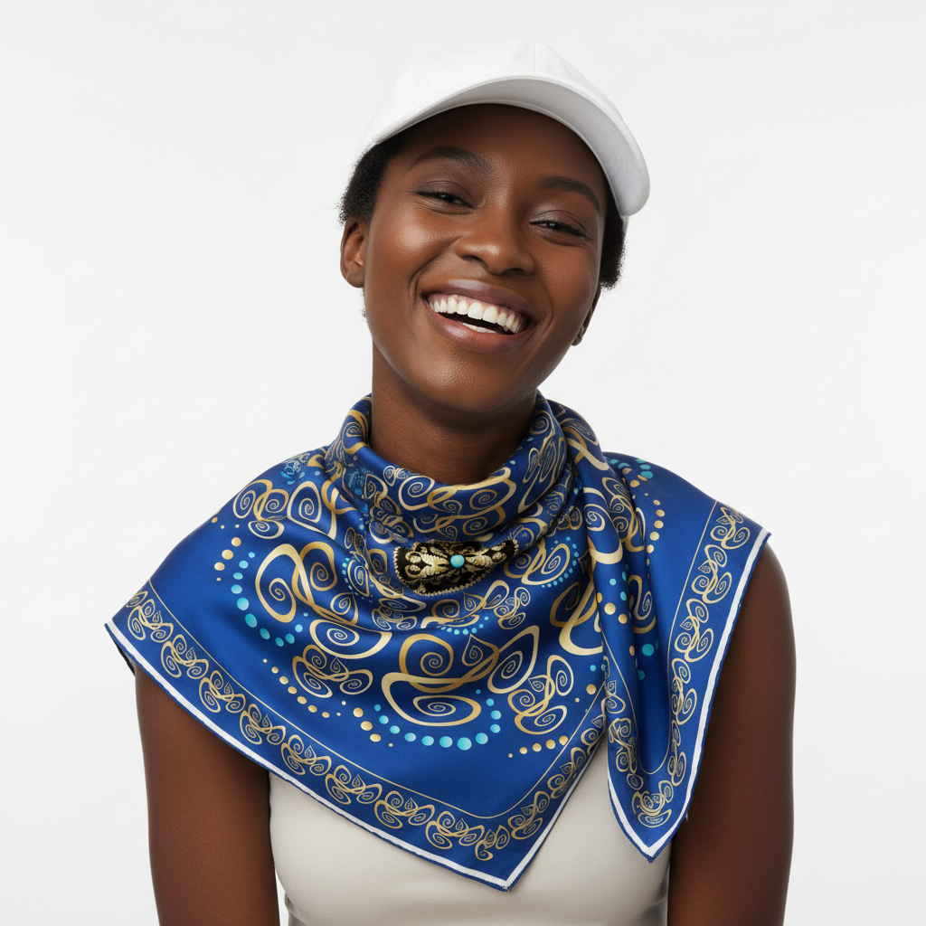 These fluid and beautifully draped silk scarves are the perfect way to dress up any outfit, allowing you to wear Kukloso art wherever you go, all year long.