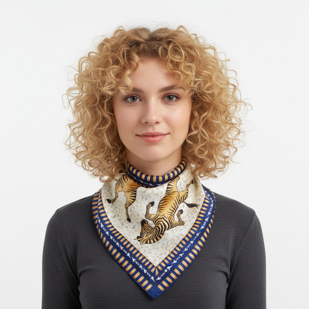 100% Silk Charmeuse Square Scarf The Golden Zebras