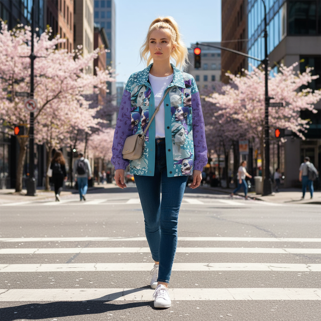 AOP Unisex Casual Lapel Jacket Kukloso Patchwork Collage No 94