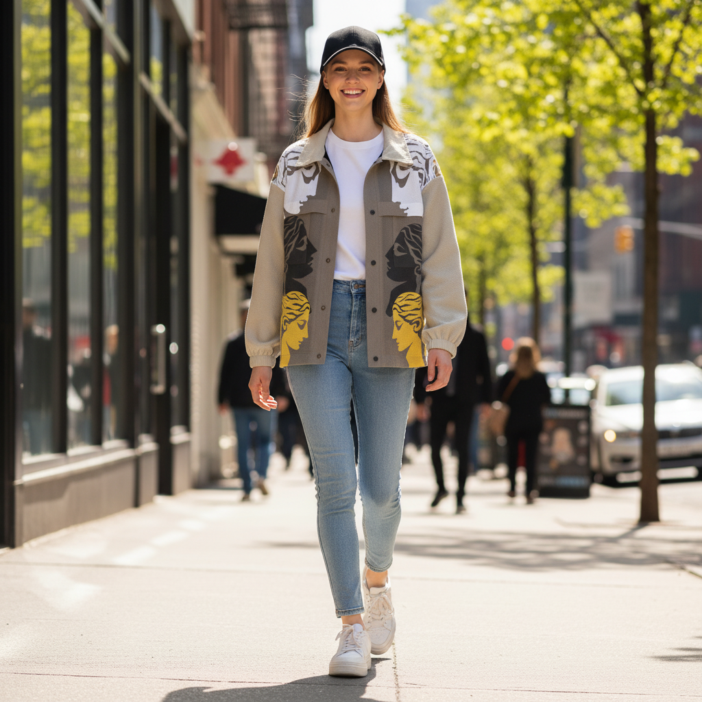 AOP Unisex Casual Lapel Jacket Kukloso Patchwork Collage No 104