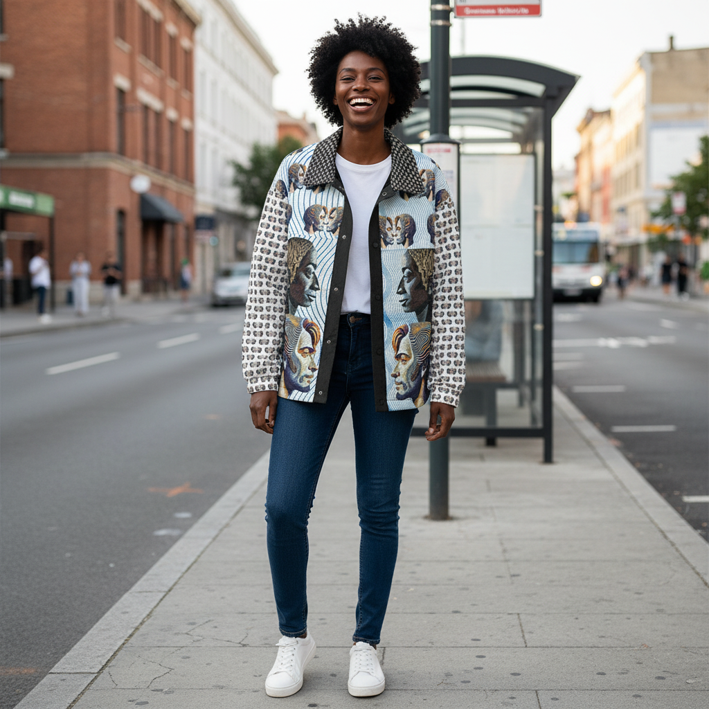 AOP Unisex Casual Lapel Jacket Kukloso Patchwork Collage No 112